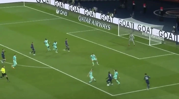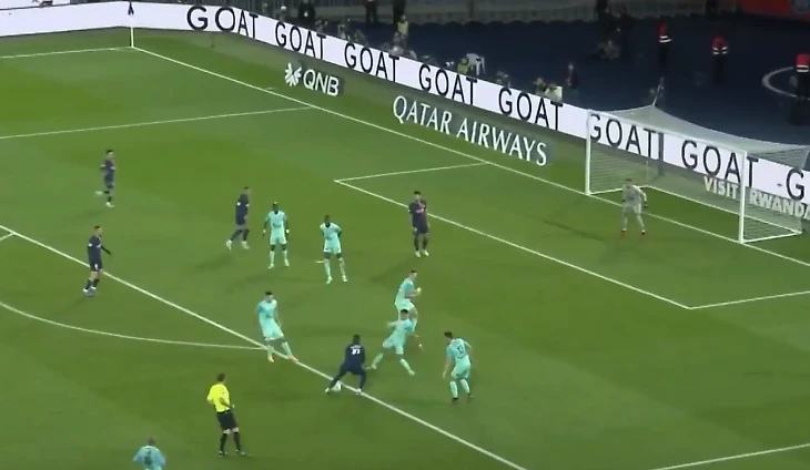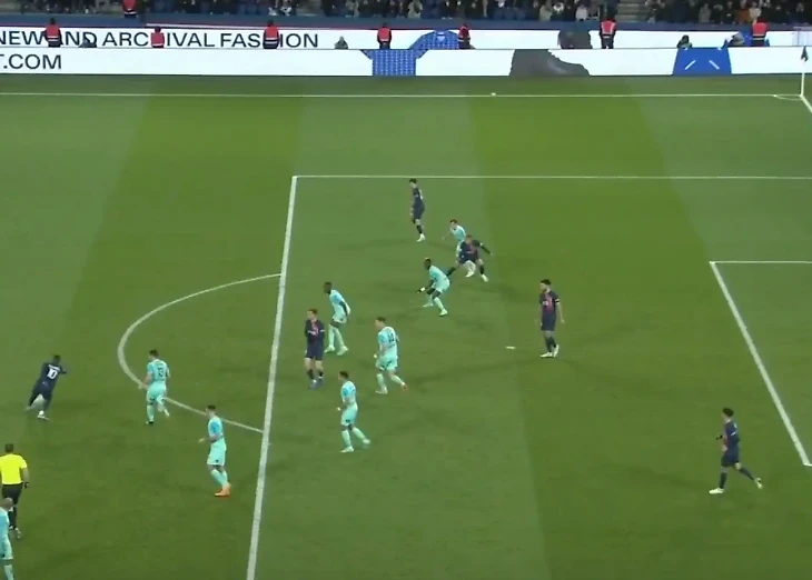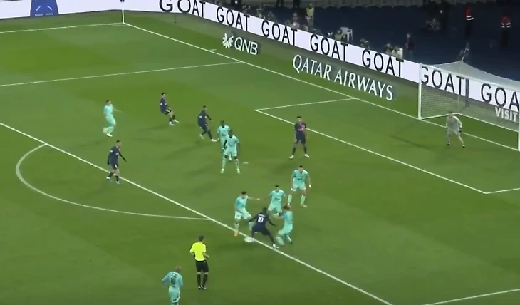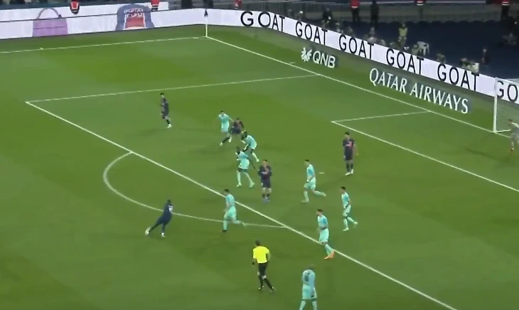 Красивая комбинация парижан, к сожалению, закончилась отменой взятия ворот. А все из-за небольшого офсайда в момент передачи Дембеле на Мбаппе.