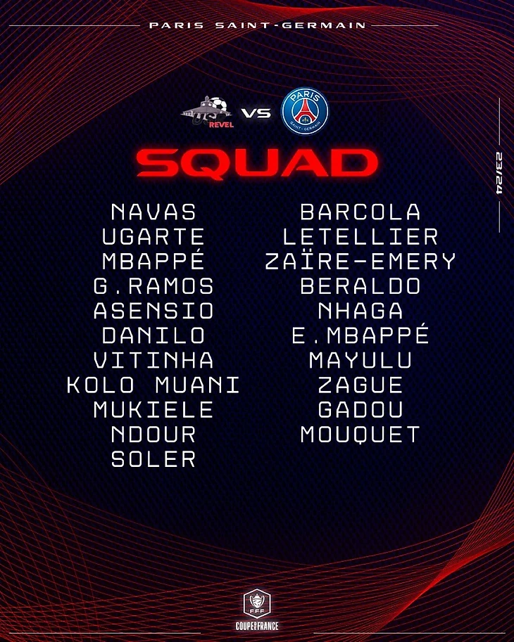 По информации RMC Sport, в кубковом матче против клуба «Ревель» из шестого дивизиона ворота «ПСЖ» будет защищать Кейлор Навас.