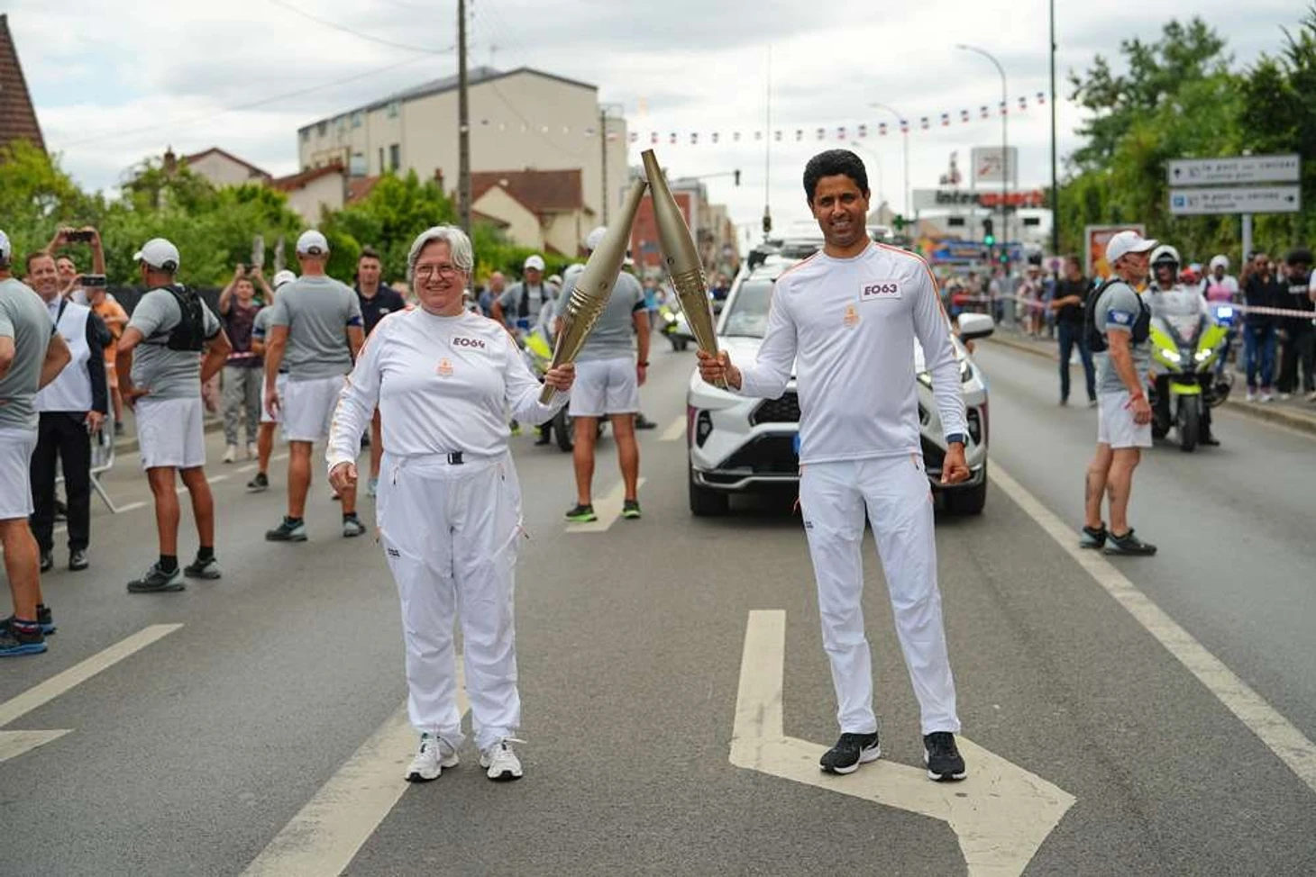 В сопровождении большого количества парижан президент «ПСЖ» Нассер Аль-Хелайфи пронес олимпийский огонь по улицам Виньё-сюр-Сен (коммуна в южном пригороде Парижа). После забега на 500 метров Аль-Хелайфи передал факел Мари-Роланде Биро, президенту местного клуба дзюдо. Через несколько дней 26 спортсменов «Пари Сен-Жермен» будут защищать цвета десяти разных стран.