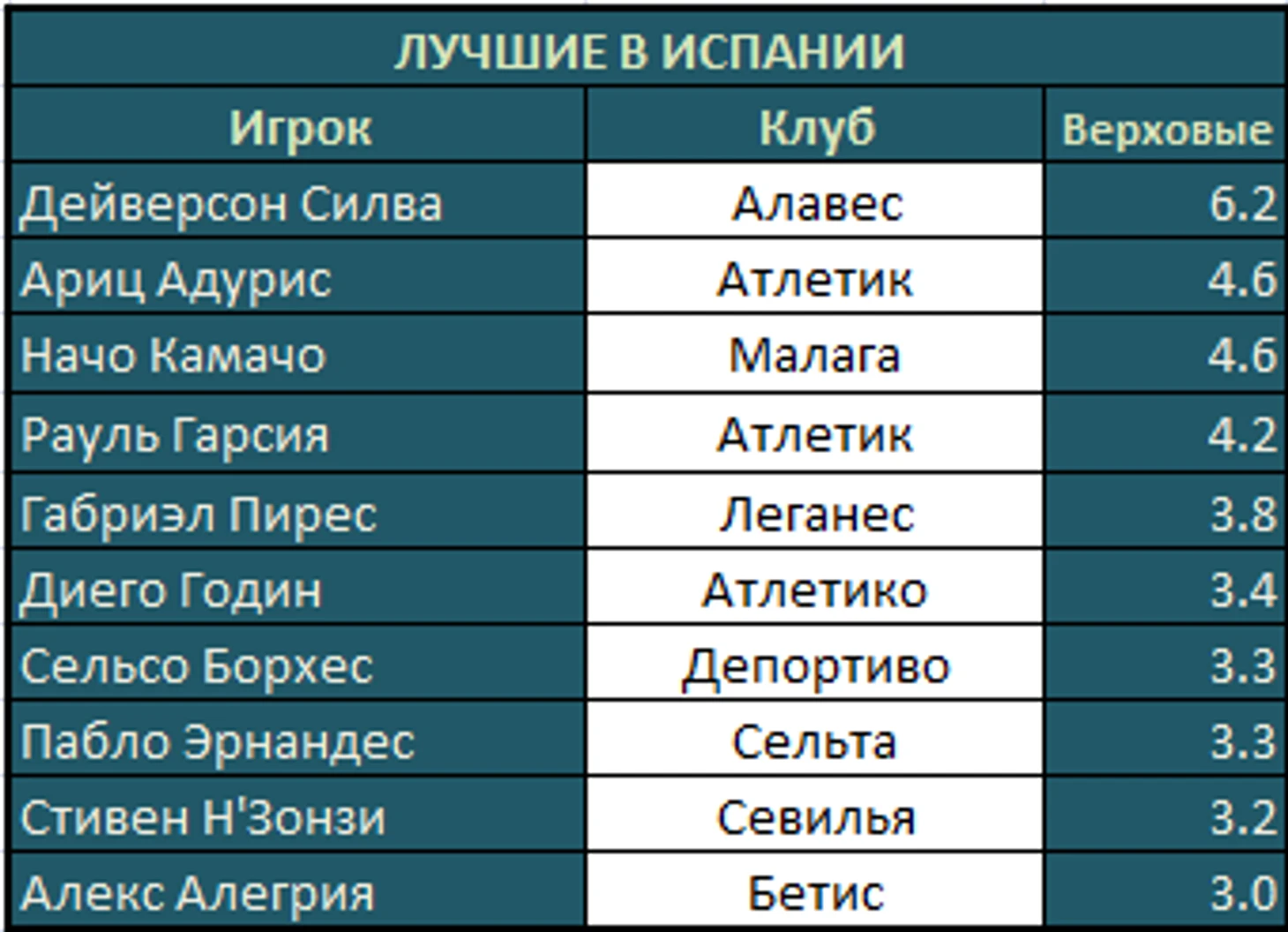 Обычно можно не глядя на рейтинг сказать, что все верхние строчки занимают баскские команды. Вот сколько есть представителей Эускади в примере, столько их и на вершине. В этом году картину чуть-чуть подпортил пролезший вперед «Леганес», но в остальном все как обычно. Баски англичанистей англичан, когда дело касается игры на втором этаже.