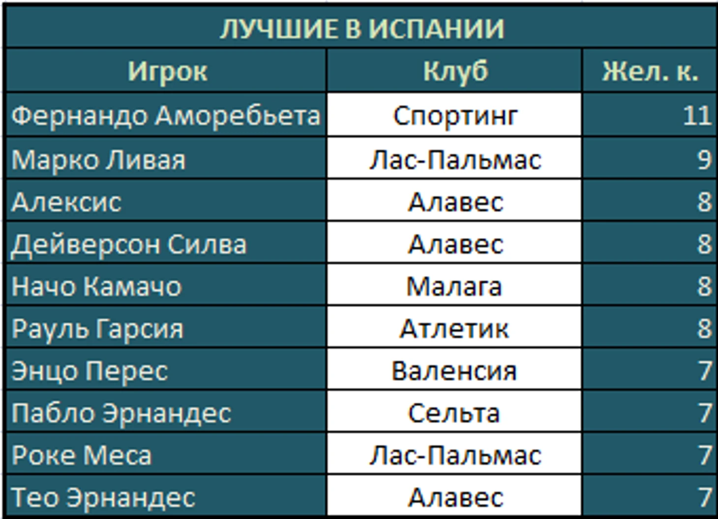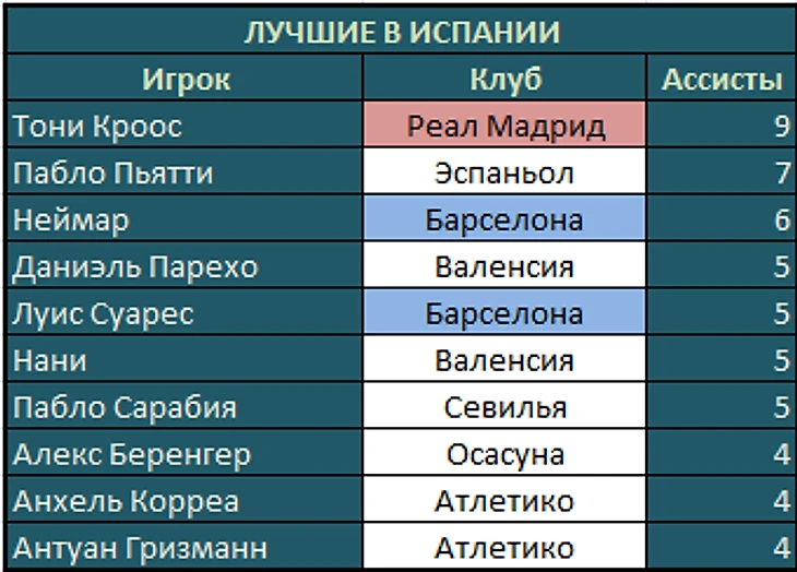 Прикольно, что второй год подряд в топ-3 оказывается игрок «Эспаньола». Тогда это был Марко Асенсио, сейчас – проводящий лучший сезон в карьере Пабло Пьятти. Все остальные фамилии в топе новые.