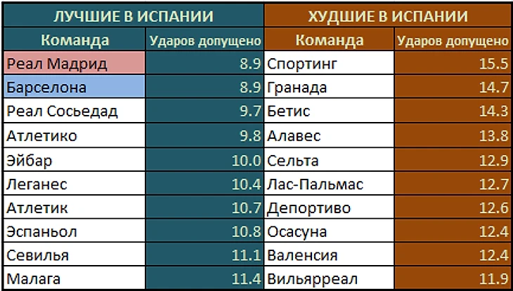 Оба гранда сбавили по этому показателю – «Барса» на 0.4, «Мадрид» на 1.5, – но и этого хватает для комфортного преимущества над всеми остальными.