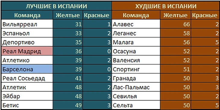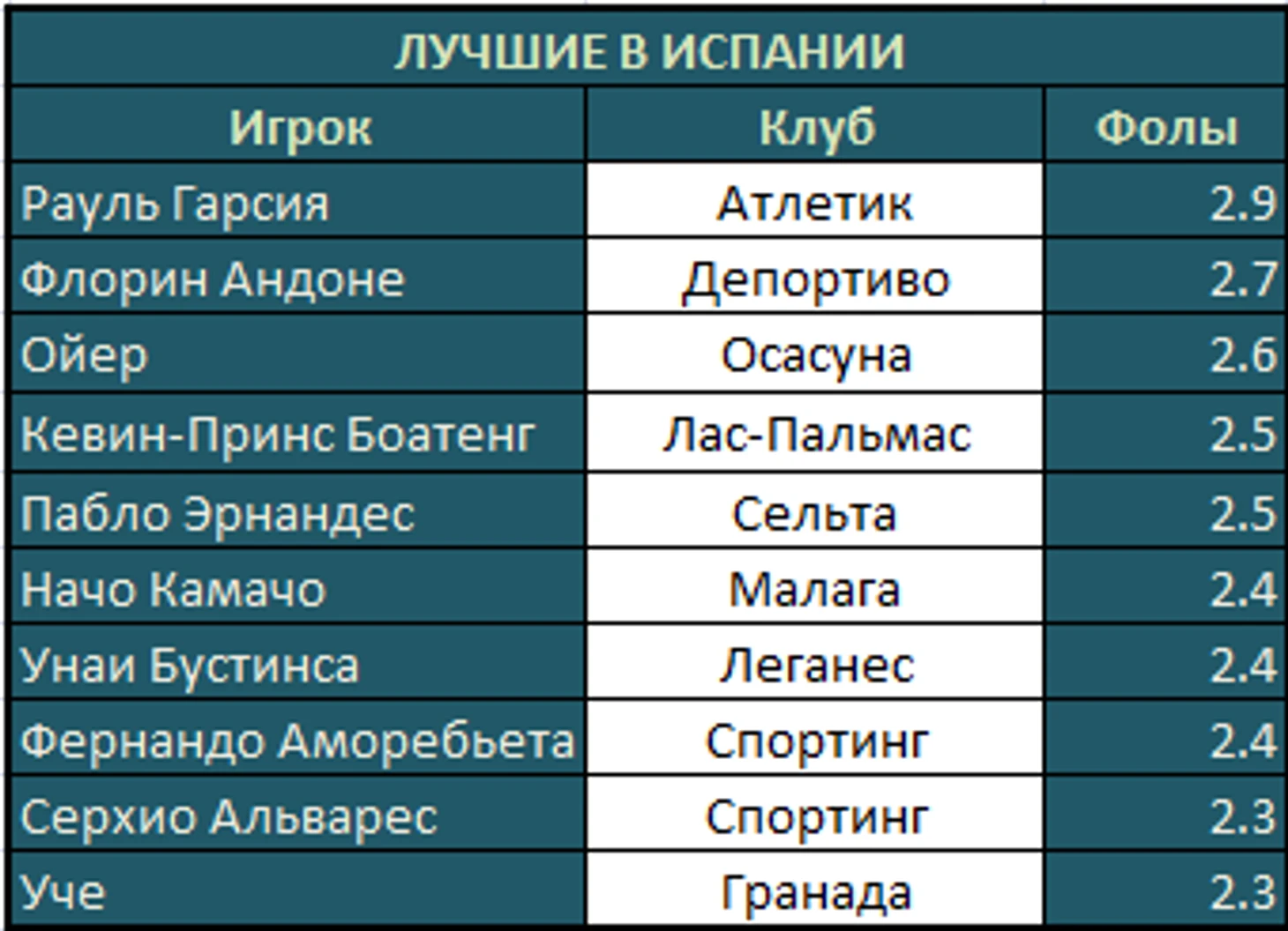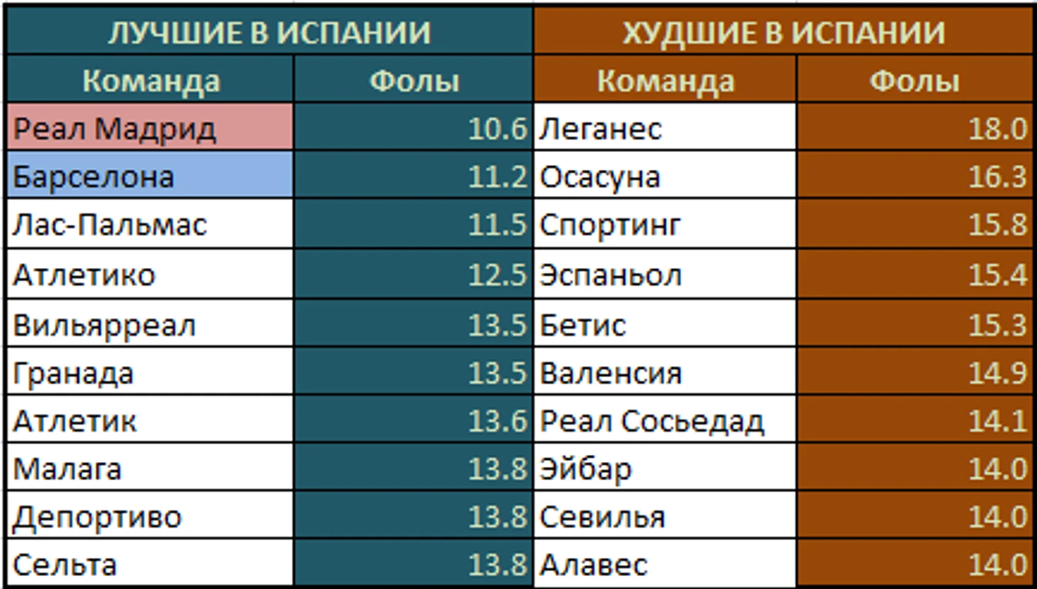 Еще один рейтинг, в котором «Лас-Пальмас» играет на уровне грандов. А «Эспаньол» наконец-то подобрел, команда на протяжении нескольких лет была самой фолящей с хорошим отрывом.