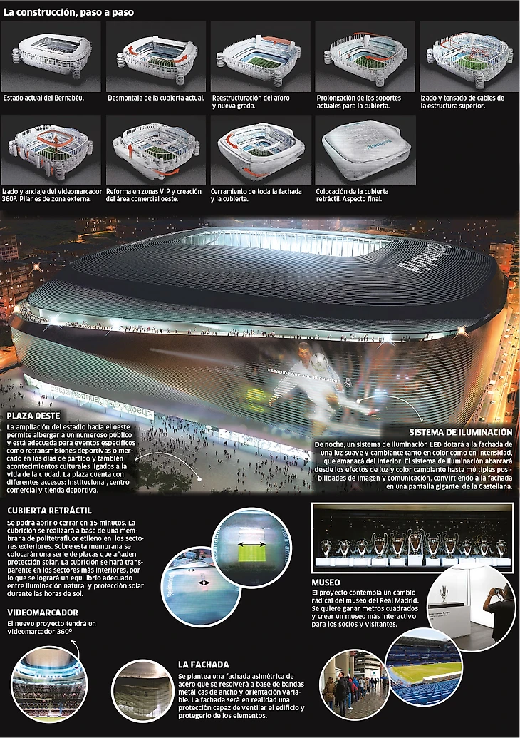 В 2022 году на «Сантьяго Бернабеу» появится складная крыша, которая придаст стадиону футуристический вид. Арена будет огорожена зеленой зоной площадью 12 км².
