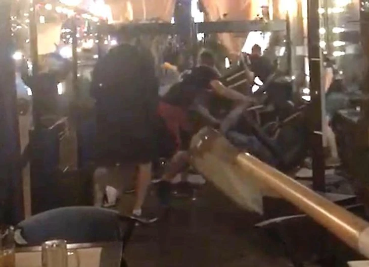 В четверг вечером около двадцати футбольных хулиганов в Киеве атаковали ресторан, где обедали болельщики "Ливерпуля". Вместе с людьми пострадало заведение Rooster – оно располагается через дорогу от стадиона "Олимпийский", который 26 мая примет финал Лиги чемпионов между "Ливерпулем" и "Реалом".