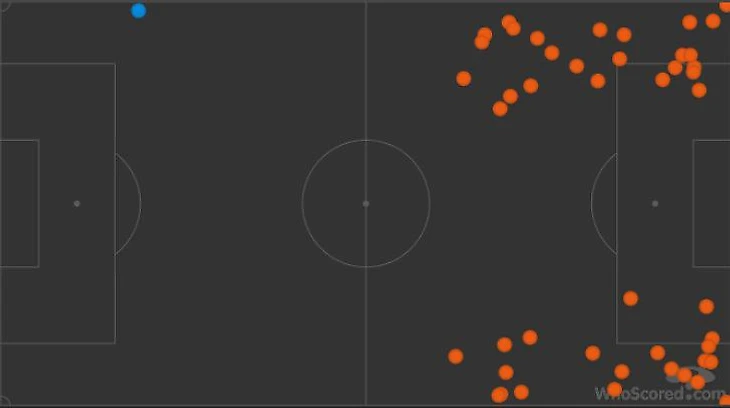 Теперь ещё долго будут обсуждать насколько справился или не справился Жоржиньо с ролью реджисты, но причины не в нем, оба итальянских крайка показали эталон примитивизма и бессмысленности, Кандрева и Дармиан зачастую даже не могли сделать очередную подачу, твердолобо и прямолинейно подавая прямо в ближайшего защитника, истраченным попыткам нет числа. О чем думал Вентура все 2 игры наблюдая это? Почему так поздно заменили Дармиана? Почему Вентура не прибегнул к спасительной 4-3-3 по которой играют большинство игроков сборной в своих клубах? Вопросы будут сыпаться ещё многие многие дни… счет по кроссам 51:1, не каждый игрок отдает столько передач за матч сколько Италия навешивала, карта выглядит еще более показательно.