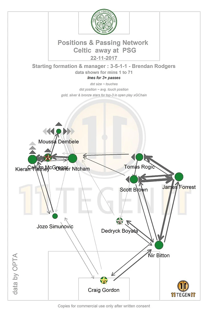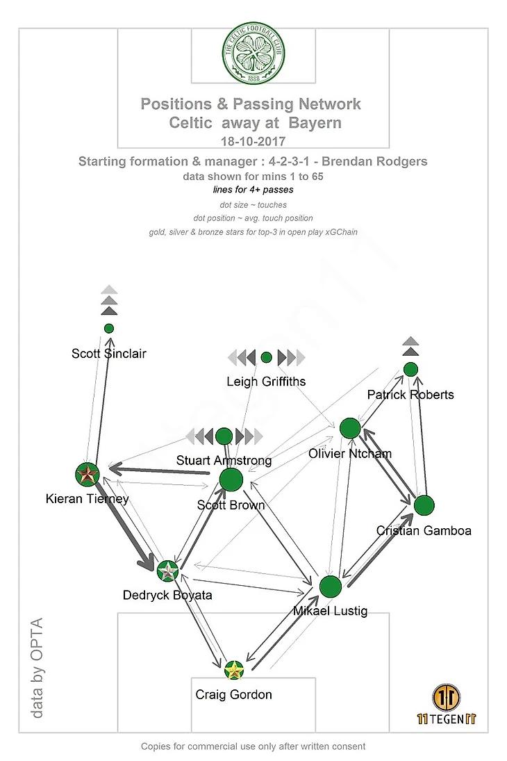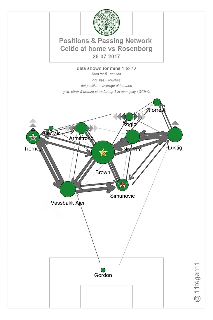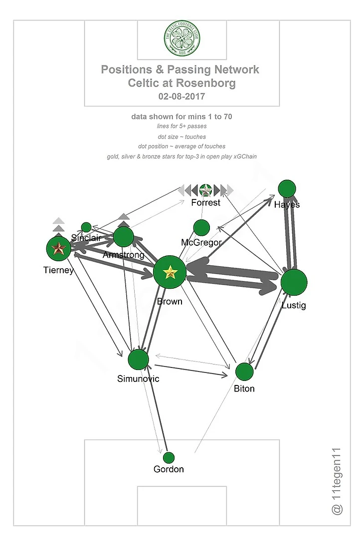 Селтик в еврокубках это другая команда, они отходят от своего стиля и подстраиваются под соперника. Карты передач из матчей показывают, что если надо, шотландцы могут сыграть и в контроль мяча, и вторым номером, и в 5 защитников, и в чисто фланговую игру по вертикалям. Короткий обзор этим матчей, обо всем по порядку: