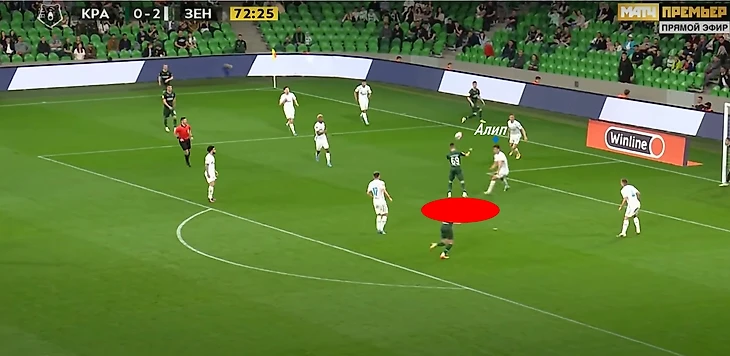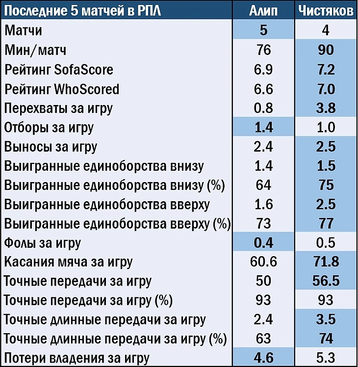 А вот количество длинных передач, играя за Зенит, он уменьшил в два раза. В матчах, где Алип выходил с первых минут, у него в среднем 2.4 точных длинных (63%). Мало это или много поможет понять статистика Чистякова в этих же матчах, у которого по его словам нет сильного первого паса: 3.5 точных длинных (74%). Если Алип хочет остаться в Зените, то в осенней части следующего сезона ему нужно стать уверенней при игре с мячом.