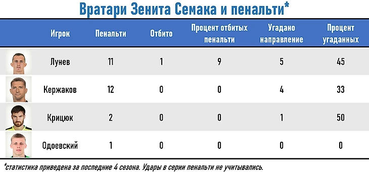 А как дела у Зенита с отражением пенальти? Мягко говоря, катастрофа.