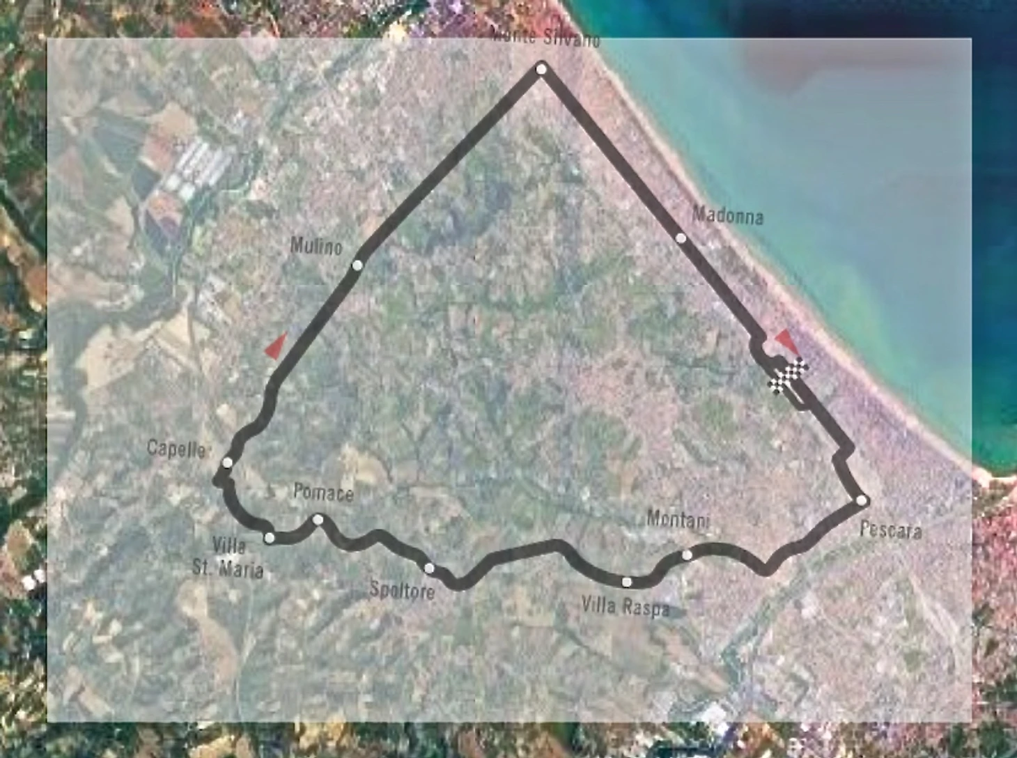 Временная трасса начиналась с набережной и вела по городским, а затем проселочным дорогам в холмистую местность Абруццо. Длина круга на два километра превосходила «Северную петлю «Нюрбургринга»: организаторы не могли контролировать зрителей на всем протяжении огромного маршрута, и потому билеты на гонку даже не поступали в продажу. Тем более многим требовалось просто открыть окно, чтобы увидеть, как мощные спортивные машины несутся по узким улочкам прямо перед их домом.