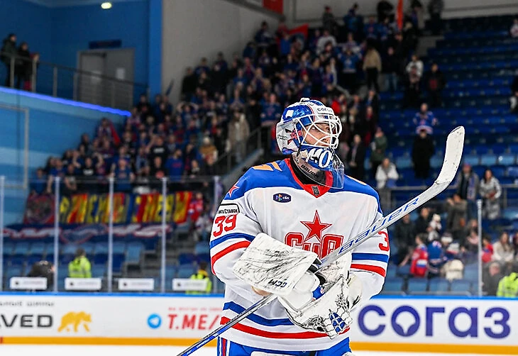 Белорусский вратарь выстрелил в регулярке-2023/24. Главный тренер СКА Роман Ротенберг часто использовал его бэкапом и выпускал во время неудачно складывающихся матчей.