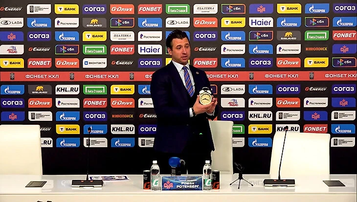 В момент первого вопроса от журналиста Ротенберг активировал будильник и засмеялся. А затем произнес: «Я просто хотел вам подарить подарок, чтобы вы писали статьи позитивно о СКА».