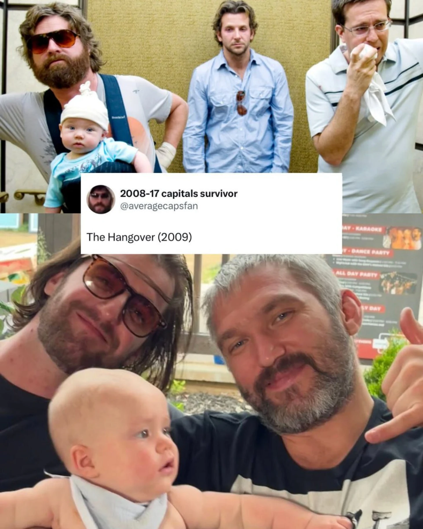 Это не первое забавное фото Овечкина из отпуска. Ранее в соцсетях появилось его совместное фото с вратарем «Вашингтона» Логаном Томпсоном. Хоккеисты держат сына Алексеева – Ивана.