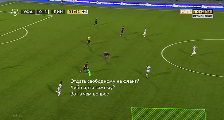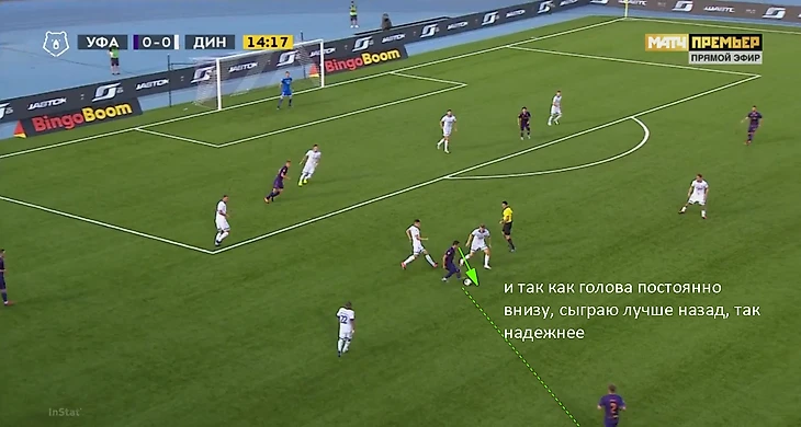 С моей точки зрения, один из важнейших компонентов для игры футболиста на высоком уровне. Данная проблема вытекает из предыдущих двух. Еще сам игрок отмечал, что любит возиться с мячом. И если, болельщикам «Уфы» это приносит эстетическое удовольствие, то на более серьезном уровне это сыграет злую шутку с игроком. Полагаясь на свой дриблинг, игрок не видит партнеров в более выгодных положениях