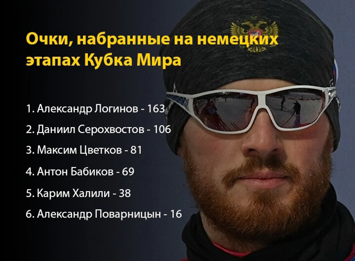 Мужская индивидуальная гонка стала экватором олимпийского сезона 2021/2022. Ей предшествовали 34 гонки на этапах Кубка Мира, после неё запланировано ровно столько же - 34 старта. Именно триумфальная для Антона Бабикова “биатлонная классика” в Антхольце стала поводом для обсуждения главного на данный момент вопроса: а не ошибся ли тренерский штаб мужской сборной с составом на Олимпиаду? Безусловно, все главные события сезона ещё впереди и произойдут они на загадочном стадионе Хуалиньдун в не менее загадочном городе Чжанцзяко́у. Но уже сейчас можно констатировать, что нынешний сезон стал одним из самых эмоциональных за последние несколько лет, а количество инфоповодов внутри российской сборной превысило все допустимые лимиты. Здесь вам и ураган фейлов на старте сезона: финишный коридор Латыпова, изотоник Елисеева, опоздание Мироновой и палки Гараничева. И яркие выступления новобранцев основной сборной Серохвостова и Томшина. И, конечно же, прения по поводу того, кто заслужил поехать на ОИ. Путевки в Пекин среди женской сборной, по сути, были определены уже после Оберхофа, на этом моменте нет смысла акцентировать внимание. В мужской же команда конкуренция изначально была выше, а кроме того, еще до начала этапа в Оберхофе, карты спутал коронавирус, который сразил лидера мужской сборной Эдуарда Латыпова. Минусы этого события стали очень скоро: начиная от проблем с карантинными мерами и заканчивая потерей бойца за шестую квоту и финишёра в эстафете. Плюсом стало то, что изначально приехавшие семь человек для немецких этапов превратились в шестёрку. А значит, все шестеро получили максимально равные возможности для того, чтобы показать себя с лучшей стороны. И несмотря на то, что квота была упущена, каждый из мужской сборной (за исключением Поварницына) проявил себя. Логинов выиграл золото в Оберхофе и серебро в Рупольдинге. Серохвостов продемонстрировал неожиданную стабильность (все четыре личные гонки в 25-ке сильнейших). Цветков провалил спринт в Оберхофе, но в следующих 3-х гонках по чистому времени был дважды лучшим в сборной (еще один раз стал вторым после Логинова) и зарекомендовал себя прекрасным эстафетным бойцом для любого этапа. Халили немецкие этапы провёл блекло, но стабильно попадал в очки, плюс к этому, хорошо проявил себя в эстафете Рупольдинга. Антон Бабиков дважды попал в десятку в Оберхофе и выиграл сингл-микст в паре с Резцовой, но вдребезги провалил Рупольдинг. Кстати, именно этот этап был крайним для определения состава сборной России на Олимпиаду-2022, о чем СБР объявил еще в декабре. Общая картина набранных очков в мужской сборной России по итогам немецких этапов выглядит следующим образом: