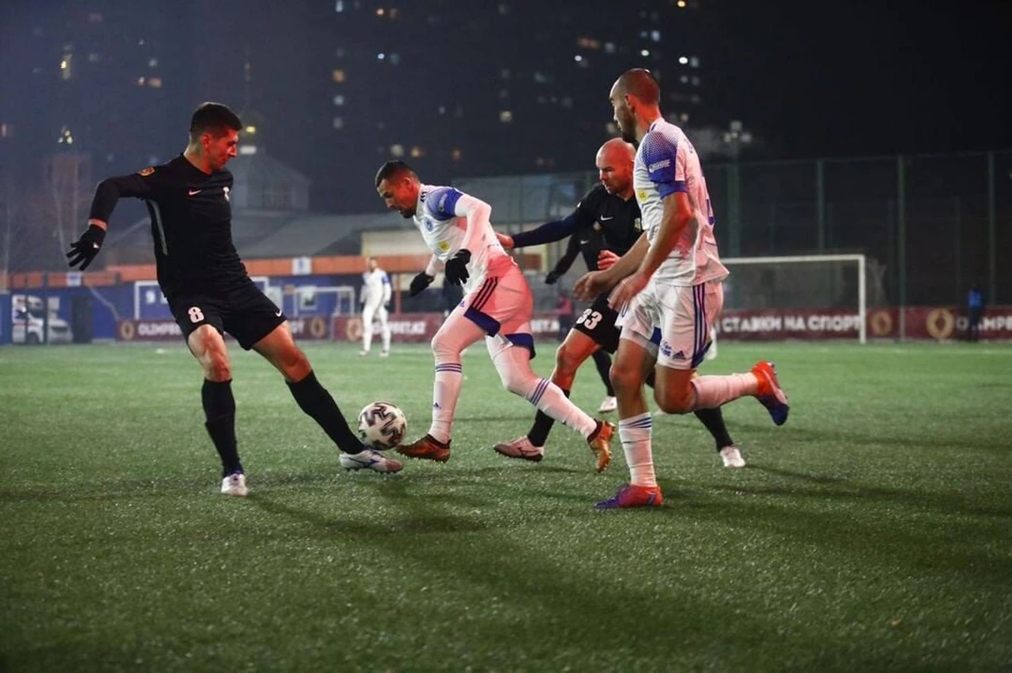 Но опуская за скобки эти моменты, Срджан Благоевич, потеряв по ходу сезона существенную группу игроков, действительно сумел собрать одну из самых симпатичных команд лиги. Поэтому сегодня на поле «Каспий» выглядел как более сильная команда. Сначала на 11-й минуте капитан команды Руслан Сахалбаев замкнул подачу с правого фланга.