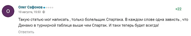В ответ автора статьи обвиняли во всех смертных грехах и даже в особо тяжких – в болении за спартак и зенит.