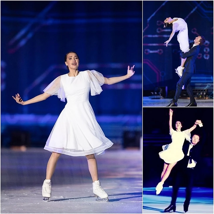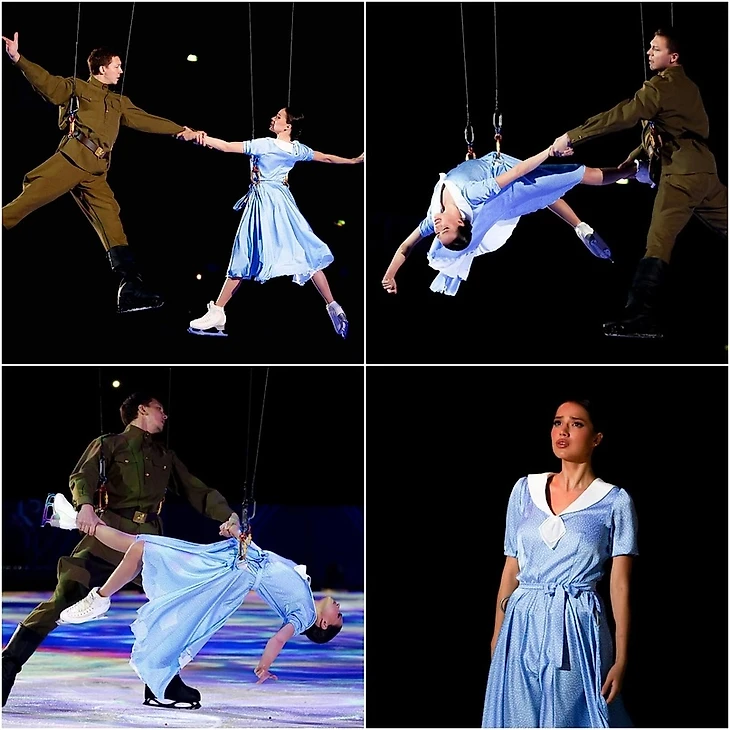 И как самая высокая точка в этой истории, затрагивающей все струны души – восхитительный танец Алины и Дмитрия. В их лебединой песне еще чувствуются острые осколки войны, врезавшиеся в память, открытые душевные раны, которые они стараются растворить в нежности и заботе. В какой-то момент они, как птицы взмывают вверх , выше облаков, снова и снова провозглашая надежду, веру и любовь. Жизнеутверждающая красота и чистота этого танца, тонкая атмосфера возвышенности чувств, нежная хрупкость бытия были переданы фигуристами настолько тонко, филигранно, что казалось, будто ангелы проникли внутрь, чтобы глубоко затронуть и очистить душу, и проливаются чистыми слезами.