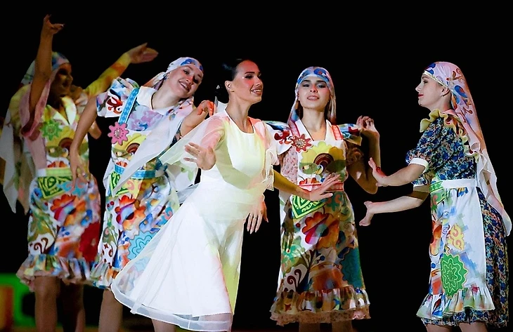 Все эти сцены чередуются задорными танцами, элементы костюмов танцующих и смена мелодий содержат отсылку на присутствие других этнических групп, населяющие территорию края, переходят танцоры и на русский народный перепляс.