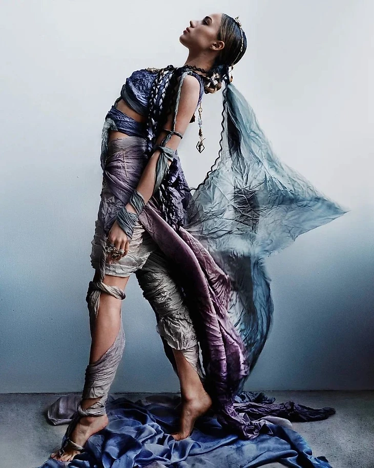 Алина в белоснежных одеяниях парит надо льдом как птица, готовая укрыть собой Дитя от любых невзгод. Она должна подарить ему не только крылья, но и укрепить его корни, чтобы он мог крепко стоять на ногах, опираясь на мудрость предков, ведь ему предстоит стать следующим Хранителем. На Алину надевают кафтан с поясом, на котором также вышито Древо Жизни, на нем уже появился новый росток, новая молодая ветвь.