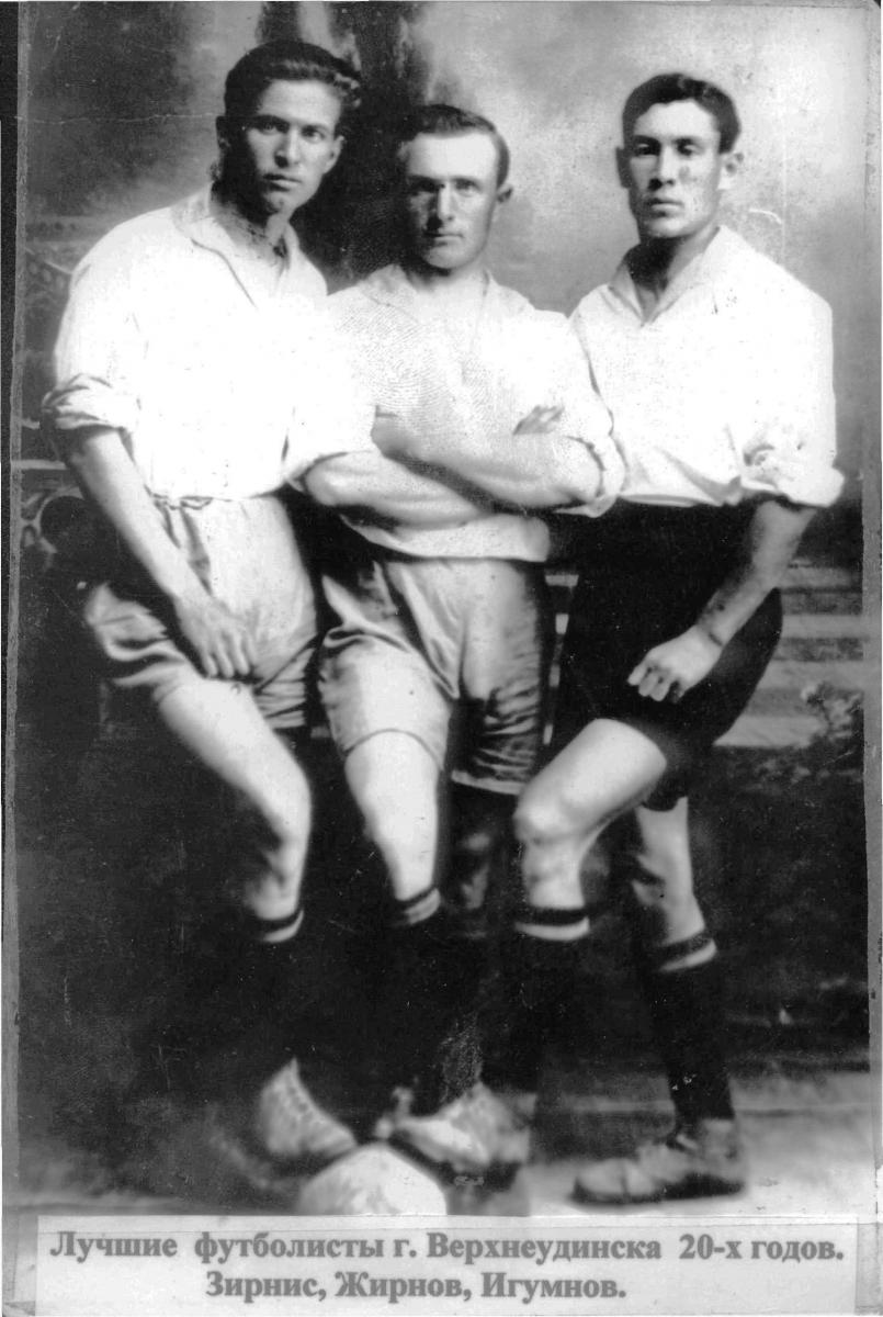 Лучшие футболисты Верхнеудинска 20-х годов: вратарь Яков Жирнов, защитник К. Игумнов и нападающий В. Зирнис. В 1923 году футболисты Верхнеудинска впервые выезжают на соревнования в Читу. Верхнеудинцы сыграли вничью со сборной командой Читы, выиграли у команды «Дальний вокзал», а команде «Чита-2» проиграли. В эти годы создаются команды в г. Троицкосавске (с 1934 г. - Кяхта) и районах республики. Уже к 1921 году в Верхнеудинске насчитывается 35(!) футбольных команд, среди них такие как «Спартак», «Кооператор», «Транспортник», «Сибиряк» и другие.