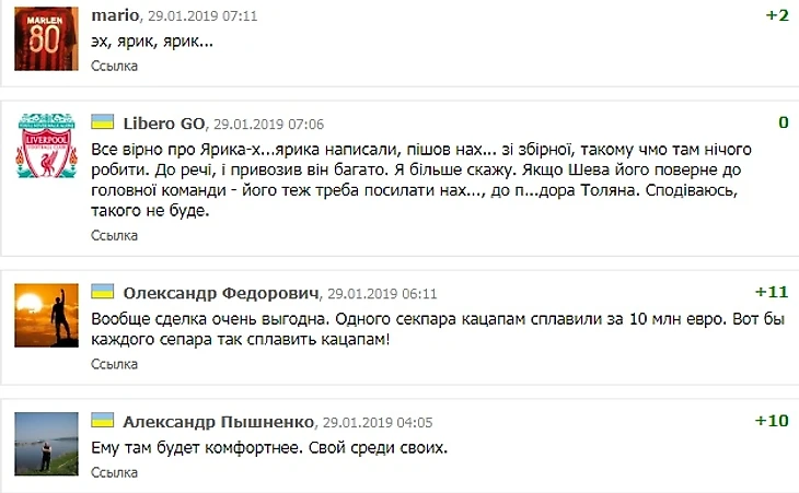 Земляки новичка «сине-бело-голубых» Александр Зинченко и Евгений Коноплянка поддержали своего коллегу, как сообщают некоторые СМИ. Якобы защитник «Манчестер Сити» оставил комментарий под прощальным постом Ракицкого с «Шахтером»: «Легенда». В тоже время игрок «Шальке» написал: «Машина».