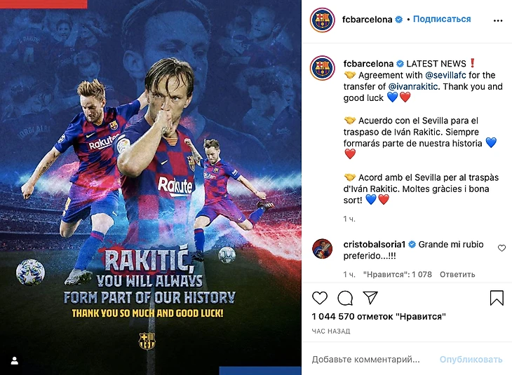На днях руководства клубов «Барселона» и «Севилья» достигли соглашения о трансфере игрока Ивана Ракитича. Цена вопроса для Нервионцев составила 1,5 миллионов евро и 9 миллионов евро сверху, которые зависят от личного выступления футболиста.