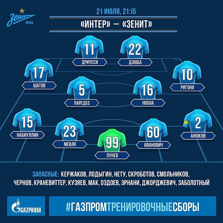 Эта встреча стала точкой в подготовке команды к новому сезону. Уже в ночь на воскресенье «Зенит» прилетит в Петербург, а 28 июля отправится в Тюмень на матч первого круга РПЛ против «Енисея».