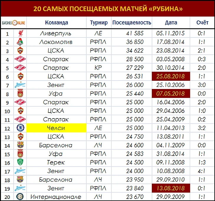 «Рубину» стоит повысить среднюю аудиторию хотя бы до 22,5 тыс зрителей, чтобы войти в историю и попасть в топ-100 самых посещаемых клубов Европы по итогам сезона. В прошлом году порог вхождения был именно такой. В последние годы лишь три российские команды регулярно попадают в этот рейтинг – «Зенит», «Спартак» и «Краснодар», в сезоне 2018/19 кандидатов от России почти десять.