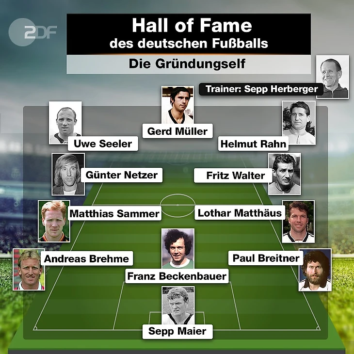 Зепп Майер, Франц Беккенбауэр, Пауль Брайтнер, Андреас Бреме, Фриц Вальтер, Лотар Маттеус, Маттиас Заммер, Гюнтер Нетцер, Герд Мюллер, Уве Зеелер, Хельмут Ран.