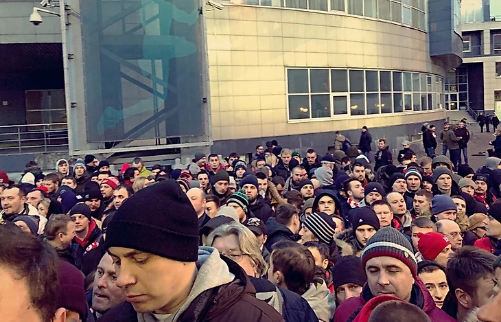 Сотни людей, приехавшие заранее на футбол в Химки, вынуждены были стоять в толпе и слушать, как любимая команда забивает гол в дерби — не имея возможности увидеть это со своего места на трибуне.