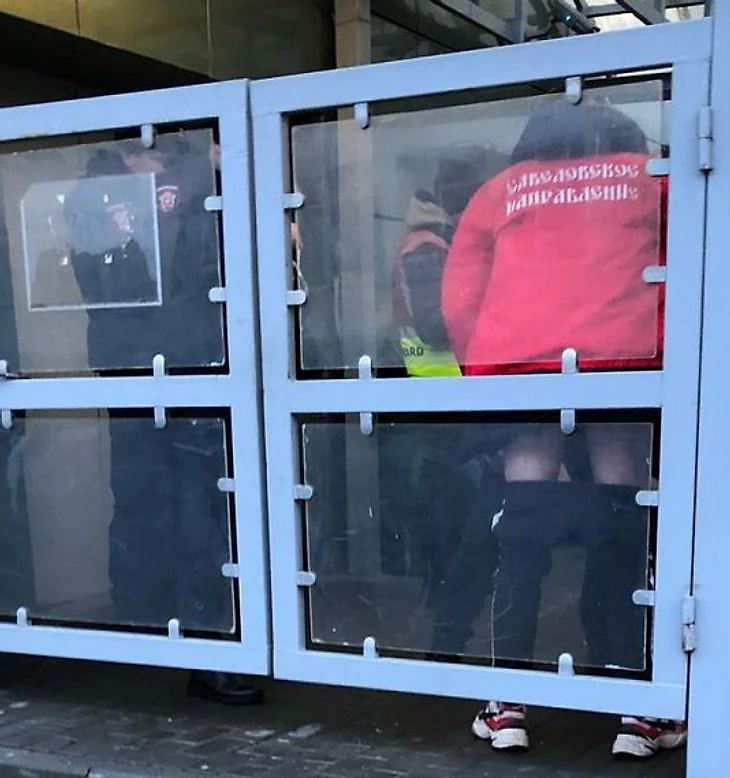 Людей, при температуре около нуля градусов, заставляли натурально спускать штаны, для того, чтобы стюарды имели возможность оценить и ощупать ( Каково, а? Хотелось бы посмотреть в данной ситуации на господина Мейтина, который имеет наглость давать комментарии, что ничего особенного в этот вечер в Химках не происходило и к нему не поступало такого рода информации, хотя в интернете легко можно было в режиме онлайн увидеть фотографии, отражающие тот беспредел, который творился в зоне досмотра зрителей.