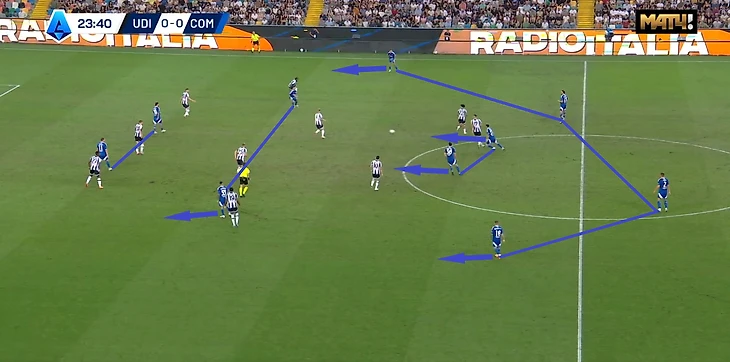 Стоит отметить эффективность прессинга в футболе Фабрегаса. Натиск «бьянкоглу» очень действенный, многим командам тяжело против такого давления, которое оказывают футболисты. Очень много опасных атак начинаются именно с отбора. «Комо» — топ-3 в Серии А по интенсивности натиска на соперника (11,1 PPDA по данным от Opta).