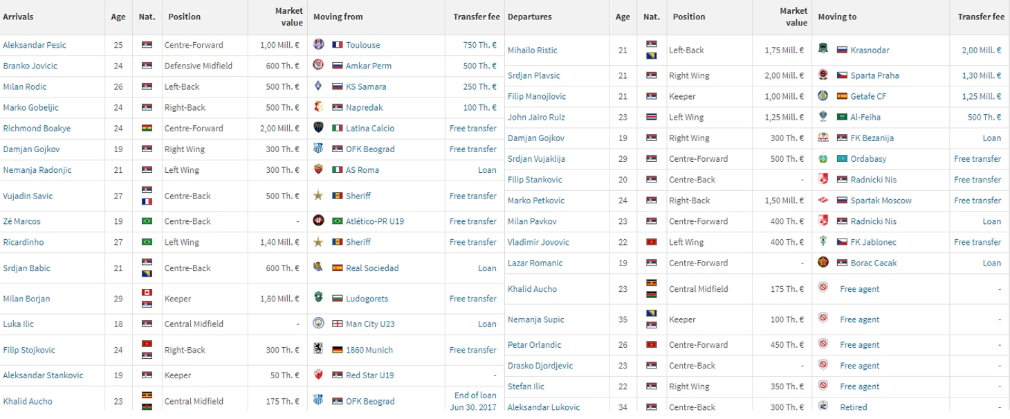 После упущенных 2 титулов летом «Звезда» вновь серьёзно обновилась. Терзич распродал игроков на 10 млн евро (если плюсовать братьев Иличей, права на которых за 5 млн выкупил «Ман Сити»), но «Звезда» не стала слабее ни на одной из позиций, а даже наоборот. Лукович не торт уже лет 7, Ристич у Божовича не был игроком основы, а Петковича и Манойловича достойно заменили Жуле Стойкович и Милан Борян. По кому и стоит плакать, так это Срки Плавшич, а точнее из-за тех копеек, за которые их с Манойловичем продал Терзич.