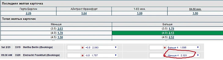 Какую бы информацию мы ни взяли, везде получается минимум 64% вероятности, что в матче будет менее 5 ЖК (а если взять все факты, то 70+%). Это соответствует кэфу 1,56, значит, стоит заиграть предлагаемый кэф и любой, что выше 1,6.