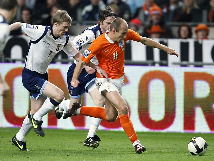 Чемпионат мира 2010. Финал Голландия - Испания. Гол Иньесты, и голландцы, в третий раз играя в финале, вновь остаются без Кубка мира. Ничего удивительного. В квалификации они играли с шотландцами.