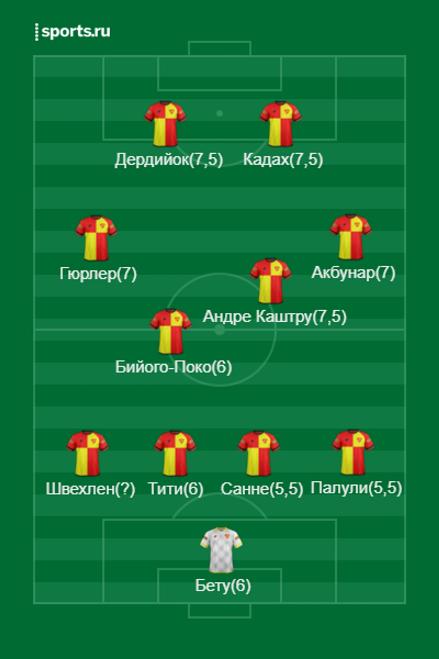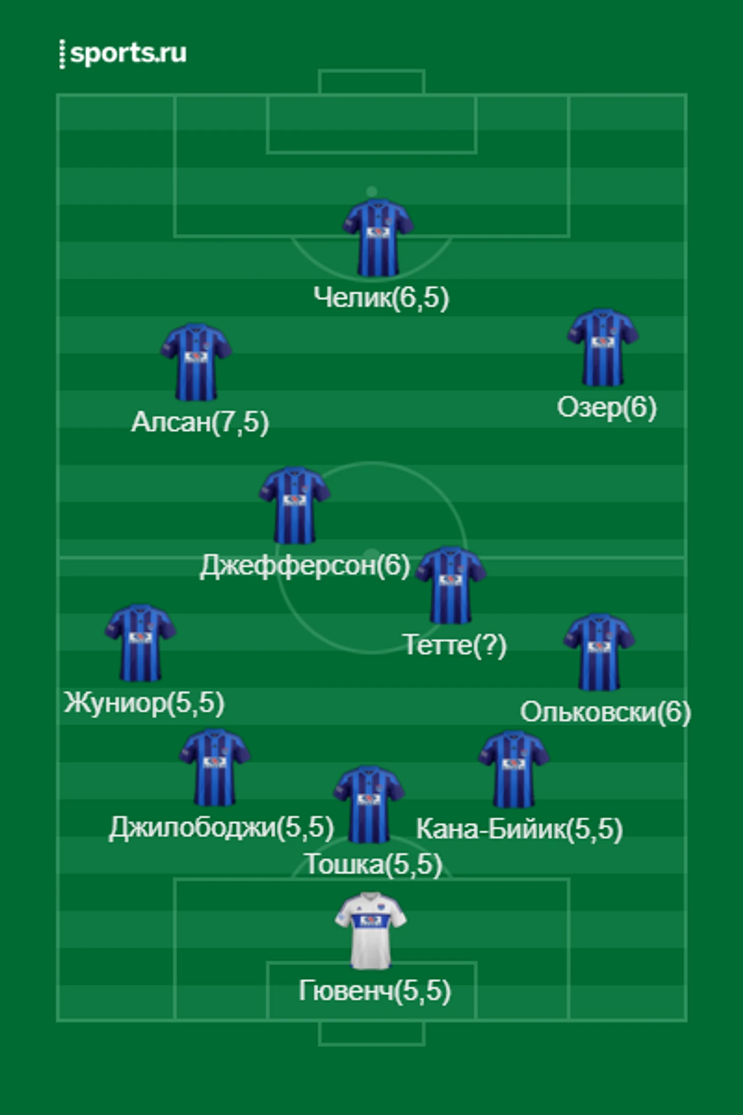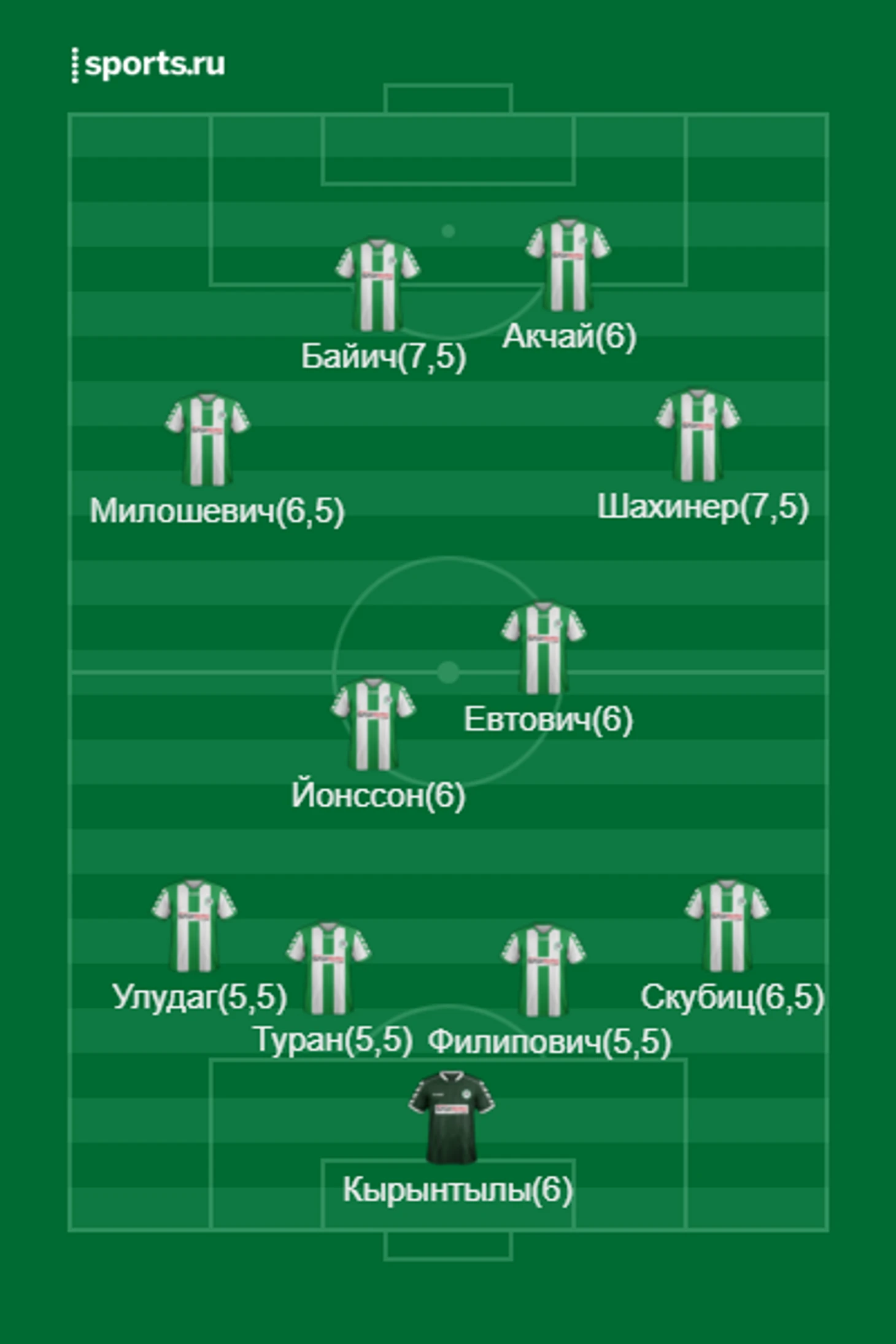 Гол+пас: Чинар(6) 1+1; Октай(5,5) 2+0; Найир(6,5) 2+0; Акгюн(6) 2+0.