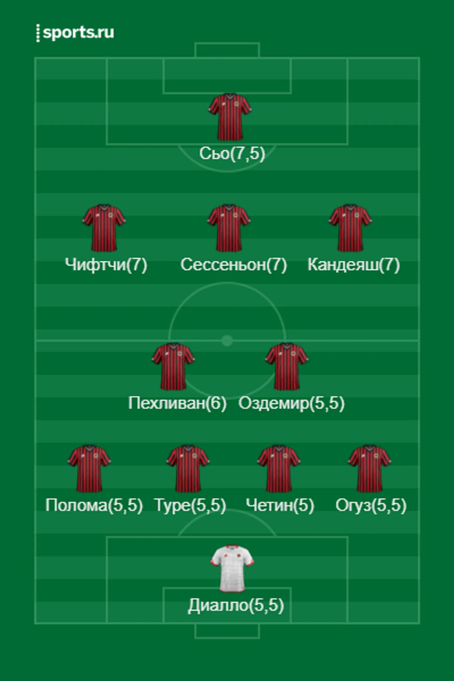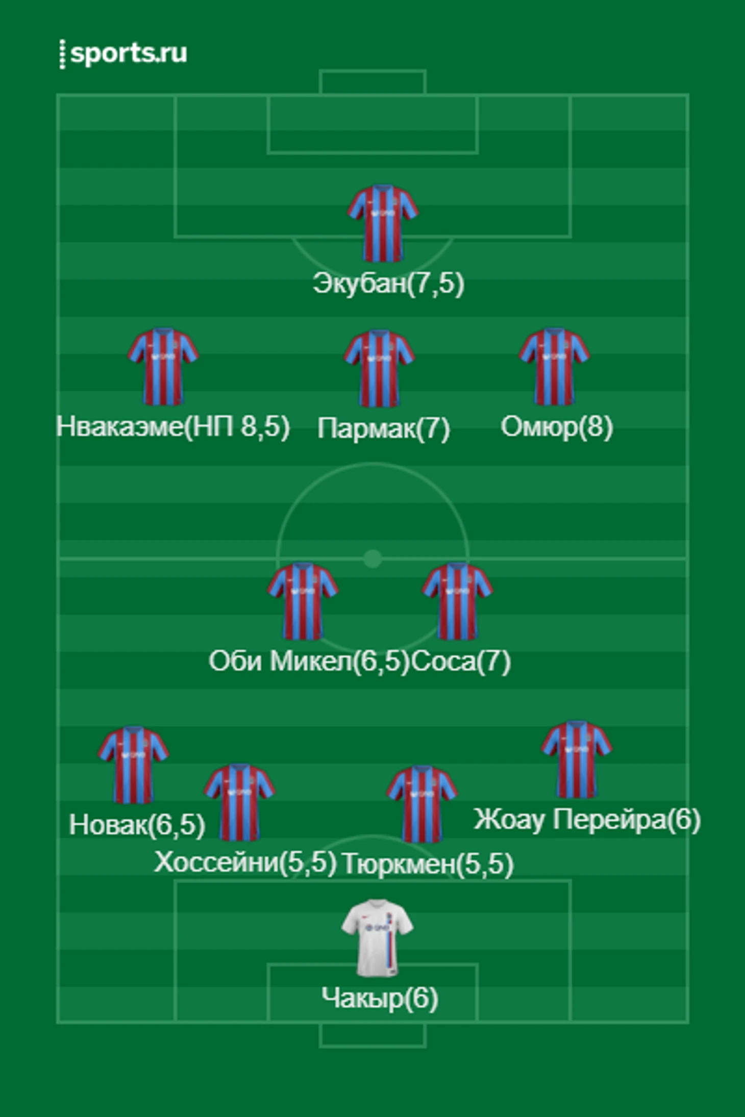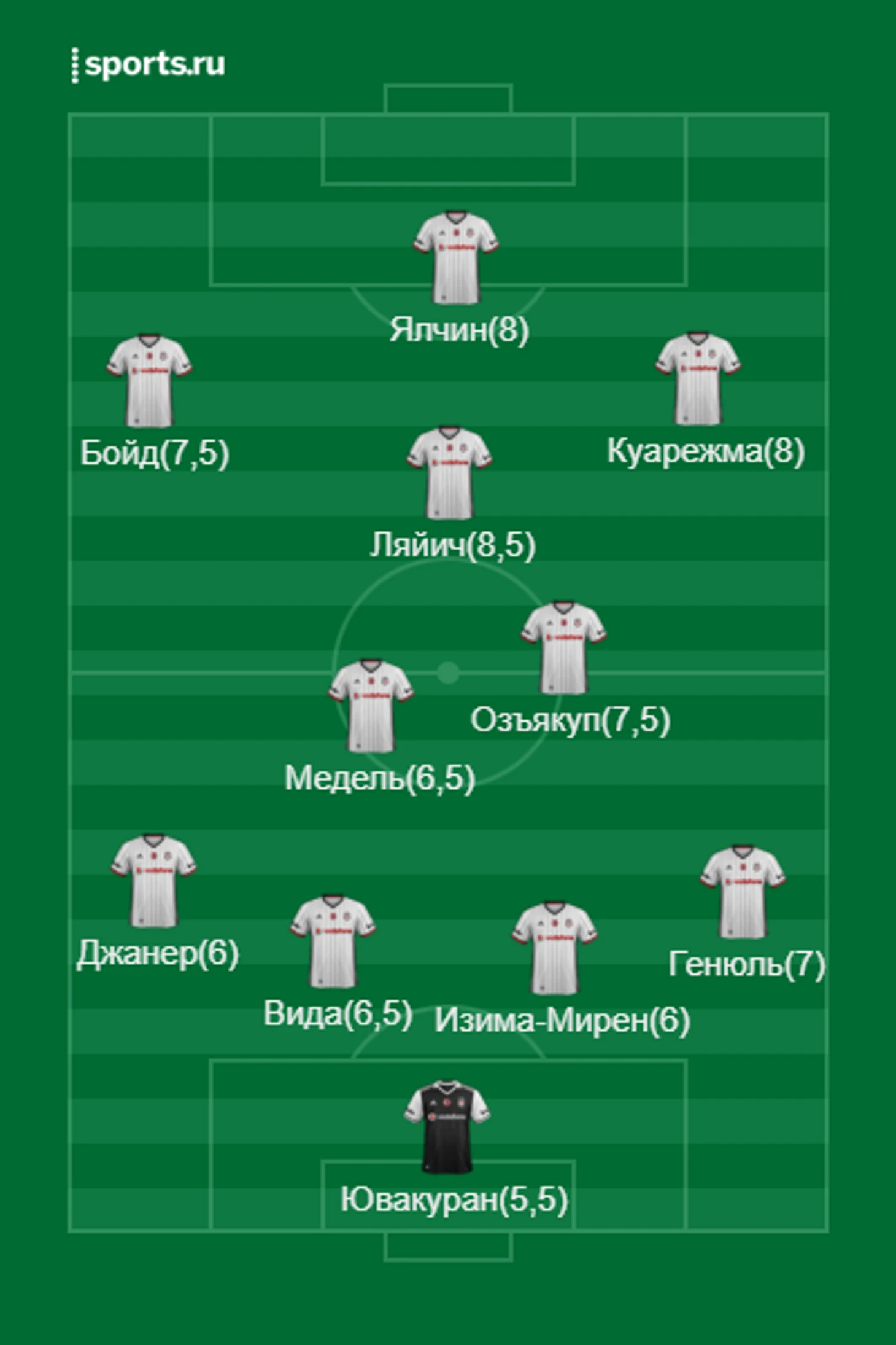 Гол+пас: Чинар(6) 1+1; Октай(5,5) 2+0; Найир(6,5) 2+0; Акгюн(6) 2+0.