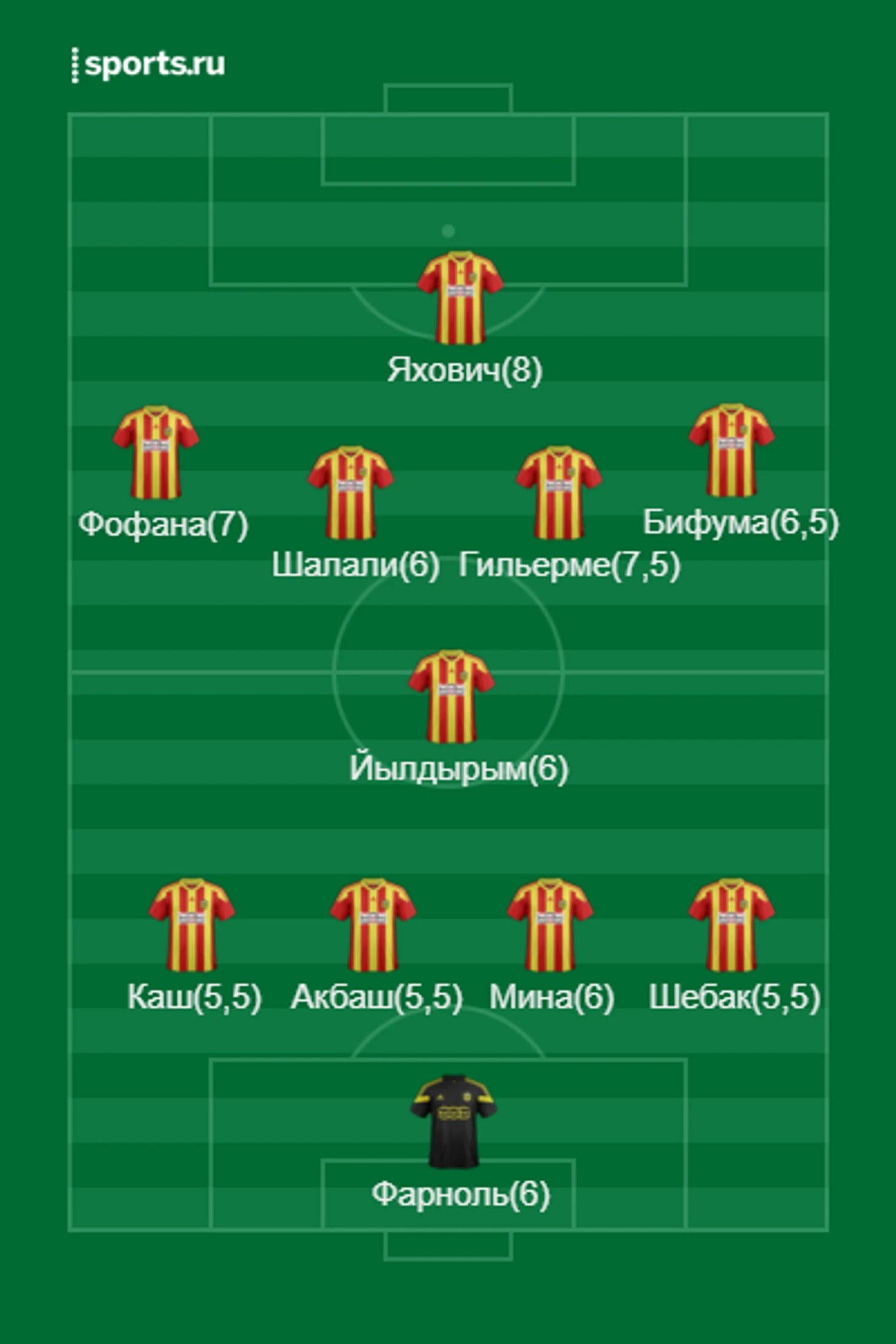 Гол+пас: Яхович(8) 2+0(1 с пенальти); Тере(6,5) 0+2.