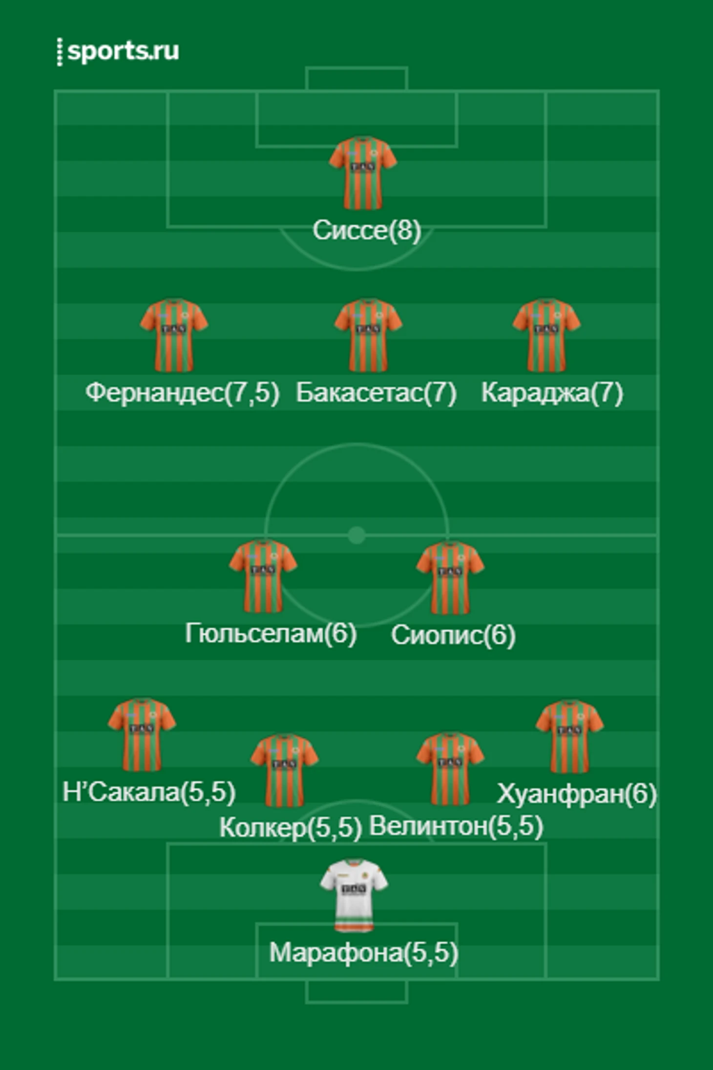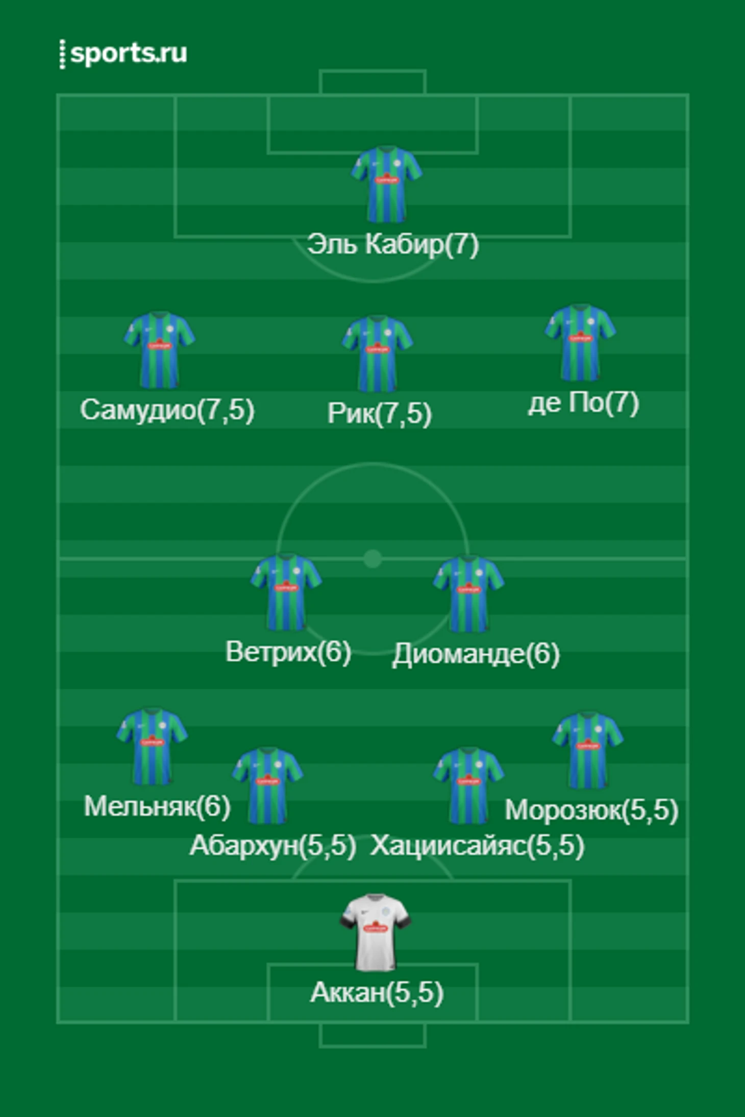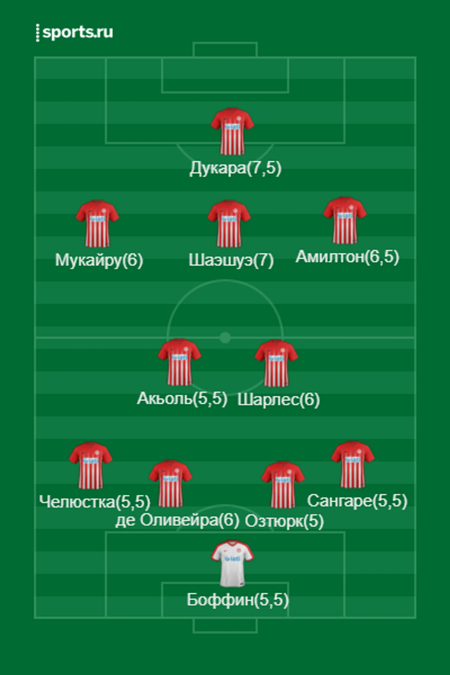 Гол+пас: Мурики(8) 3+1; Крузе(8,5) 2+1; Мозес(7,5) 1+2; Туфан(6,5) 2+0; Джигерджи(7) 1+0(1 с пенальти).