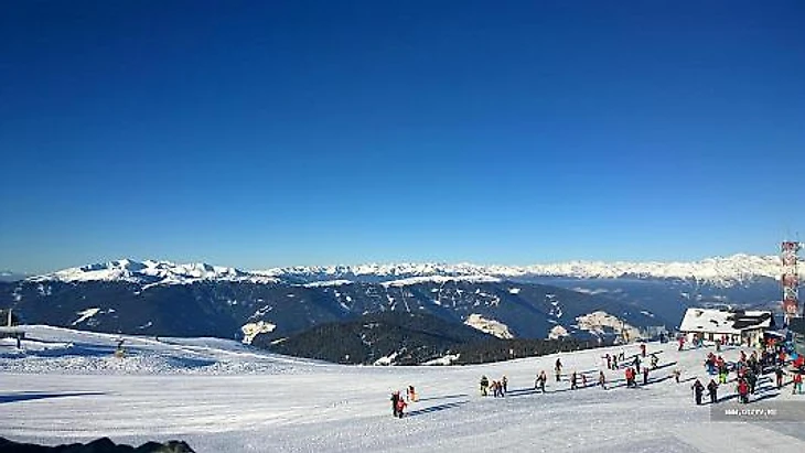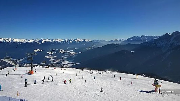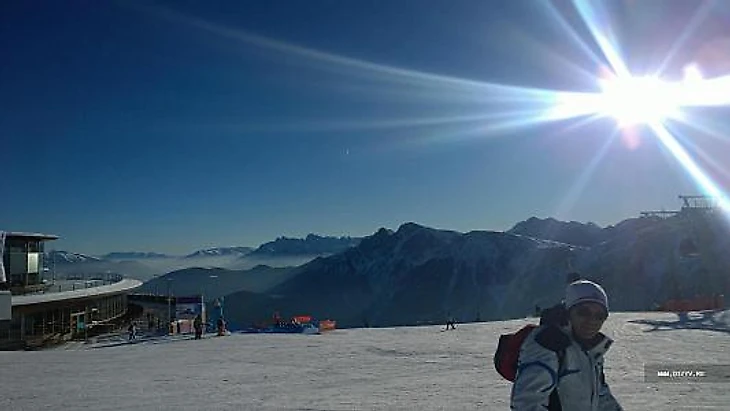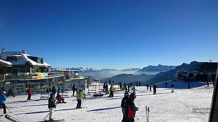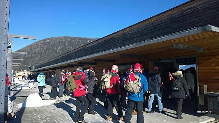 К вечеру первого дня я все-таки решила съездить на г. Кронплатц. Хоть и вовсе туда не собиралась, была так потрясена горами вокруг стадиона, что не удержалась опять забраться повыше (водится за мной этот грешок)) Пол вечера ковырялась в телефоне в поисках как туда добраться, нигде не описано от корки до корки, везде подразумевается что горнолыжники и так в курсе куда ехать. Но я то профан, нашла сколько стоит дневной скипасс, малость прифигела, я то кататься не собиралась, мне бы только глянуть. Почти смирилась с жабой, однако вспомнила, что вроде вместе с билетом на биатлон дается одно бесплатное посещение, взяла билет и точно )) обрадовавшись завалилась спать, решив что утро вечера мудрее, уж доберусь как нибудь наверх. Утром доехала до Оланга, прошлась до поселка (как потом оказалось зря, можно было на вокзале сесть в ски бас) но я не ищу легких путей, дошла до поселка, народу почти нет, пытаюсь разглядеть указатели к подъемнику )) мимо прошмыгнул ски бас, наконец увидела направление Кронплатц, тут как раз и остановка, поинтересовалась у стоявшей парочки, что де да отсюда можно попасть на Кронплатц, подъехал ски бас - проезд бесплатно. Довозят до подъемника, в кассе сунула билет на биатлон, на что мне без вопросов выдали магнитную карту с ценой 0. Пройдя за народом села в кабинку и начался подъем, очень всем рекомендую подняться наверх. Какая там красота не описать словами, а уж воздух... По центру смотровая площадка Конкордия, народа там нет, полчаса спокойно все пофотографировала. Зашла в кафе выпила кофе, виды из окна закачаешься, поймала вифи кафешки, выкинула фото в соцсети (ну как же не поделиться то радостью). Кстати бесплатный вифи доломитиски так себе, сигнал есть, а не тянет. Нормально работать начал только внизу у касс, а в кабинках и наверху вообще ничего не грузилось, хотя и показывал хороший уровень сигнала. Ехала вниз в гордом одиночестве, все нормальные люди скатывались как положено на лыжах. На обратном пути доехала уже до станции, и сразу на шаттл до стадиона.