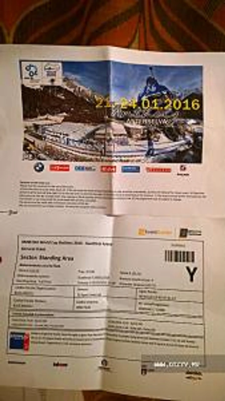 Как только решилось с билетами на самолет и бронью гостиницы, я озаботилась билетами непосредственно на сами собственно соревнования. Хоть и пишут, что билеты там в свободной продаже,мол приходи и бери, но.. я дама обстоятельная, я так не люблю. Я решила заказать на оф. сайте http://biathlon-antholz.anyticket.it/Sito/Default.aspxкомплексный билет на стадионе со стоячими местами (изначально хотела 50/50 взять 2 дня сидя * 2 дня стоя, но подумала, что сидеть я вряд ли буду) стоил 102,5 евро + 5 евро сервисный сбор + 3.5 за доставку = итого 111 евро. Платеж прошел без эксцессов, тут же пришло подтверждение на почту. На следующий день пришло письмо, что билеты мне выслали и через 15 дней должны быть у меня. Пришли даже раньше. 22 октября пришло письмо на электронку, а 2 ноября я уже плясала джигу на рабочем столе размахивая красивым стилизованным конвертом.