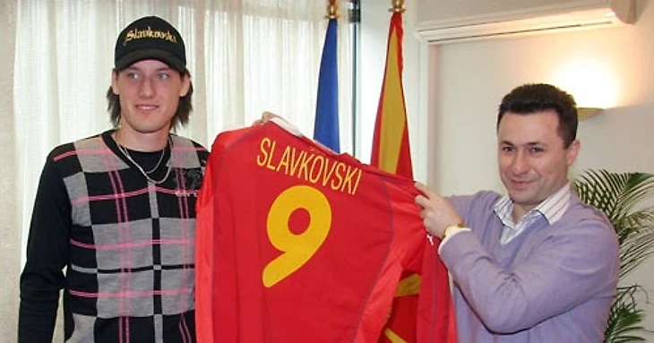 Горан Славковски, поиграв годик в Примавере без всяких шансов снова почувствовать атмосферу «Сан Сиро» (в сезоне 2006/07 он ни разу не попал даже на скамейку запасных), в 2008 году отправился в ожидаемое путешествие по арендам. Игровая практика была крайне необходима резко остановившемуся в развитии форварду. Если раньше он хотя бы здорово играл и прогрессировал в шведской молодёжке, то теперь закрыл и эту страницу. Дело в том, что огромный интерес к нему проявила сборная Македонии. О Славковски настолько много говорили в прессе, что уговаривать Горана и его родителей сменить сборную приехал лично премьер-министр балканской страны Никола Груевский. Груевский не зря является рекордсменом по продолжительности нахождения на посту главы правительства Македонии. Он настолько вдохновил своими речами юношу, что тот не только сменил «футбольное гражданство», но и немедленно дал пафосное интервью со словами: «Меня зовут не Свенссон, и не Ларссон, я не сине-жёлтый. Меня зовут Горан и мои родители из Македонии. Моё сердце красно-жёлтое и я буду играть за Македонию».