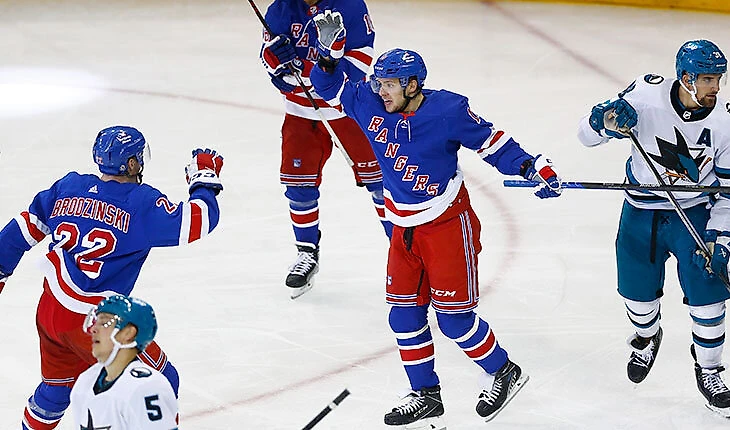 «Рейнджерс» дома одержали победу над «Сан-Хосе» (6:5). Первая звезда матча – Артемий Панарин: в его активе хет-трик и один ассист. Форвард открыл счет голам на 8-й минуте первого периода – воспользовался трафиком перед воротами Маккензи Блэквуда и бросил так незаметно, что голкипер едва шевельнулся.