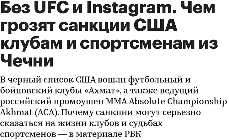 Наверняка вы уже слышали или читали про то, что США ввели санкции против Фонда имени Ахмата Кадырова, созданного по инициативе Рамзана Кадырова, а также против связанных с ним компаний и спортивных клубов. Ниже приведу часть статьи с сайта RBC и дополню её некоторыми размышлениями.