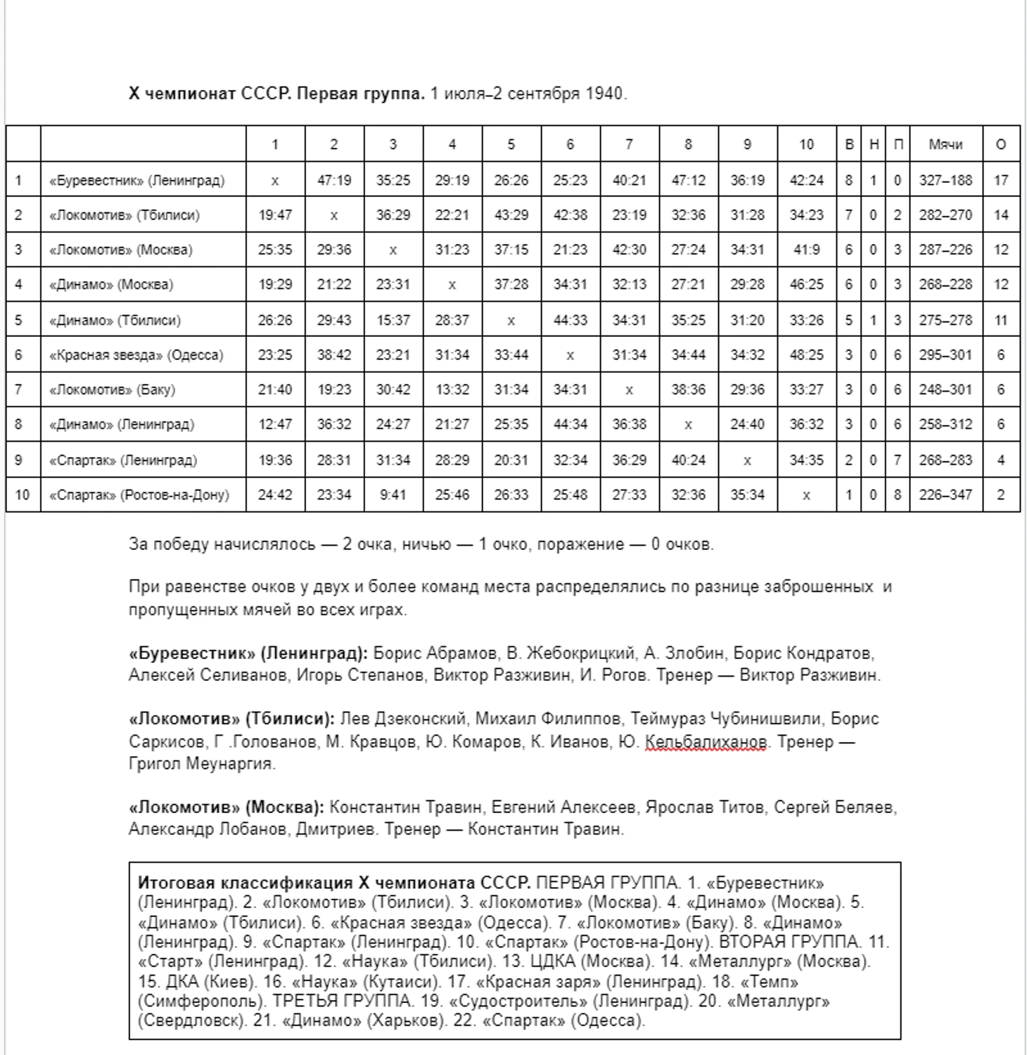 От авторов. Одна из задач нашего проекта: восстановление результатов всех чемпионатов СССР, включая низшие лиги. В данной главе нам не удалось опубликовать таблицы турниров второй и третьей групп чемпионата СССР-1940. В госархивах эти данные утеряны. Если вы располагаете информацией по этим турнирам, просьба помочь нам с восстановлением результатов. Контактный e-mail: viarus38@gmail.com