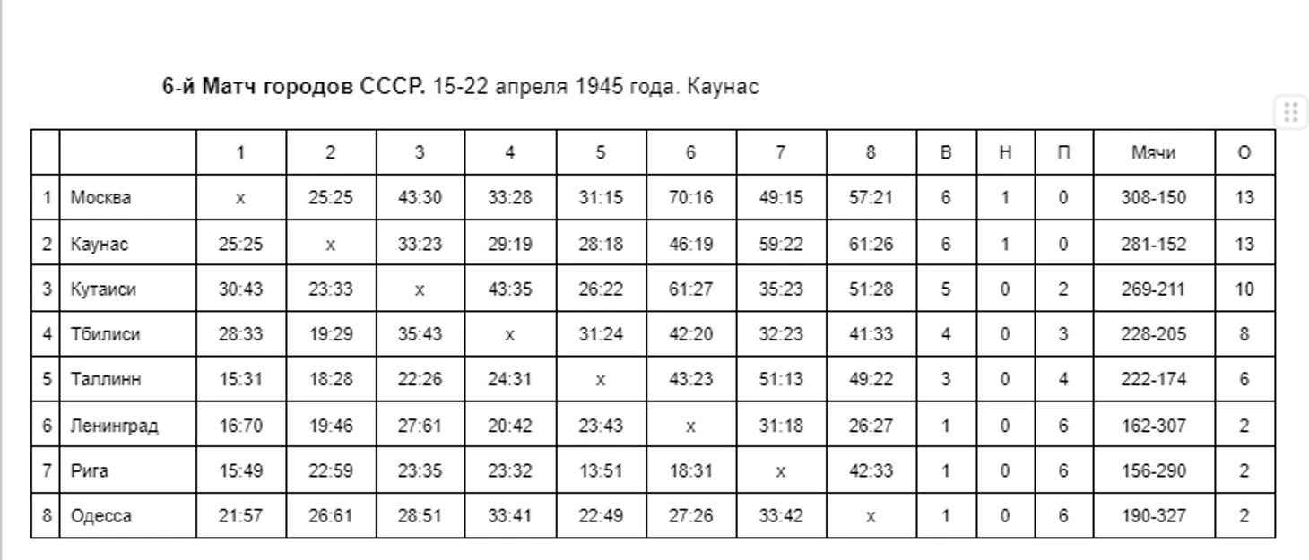 И сразу же стало понятно, кто чего стоит. Москва, Каунас, Кутаиси и Тбилиси, выиграв первые матчи у Ленинграда, Одессы, Риги и Таллина, провели границу – 4 и 4. Видимо, прозорливые организаторы так удачно составили календарь, чтобы сильнейшие между собой играли под занавес турнира.