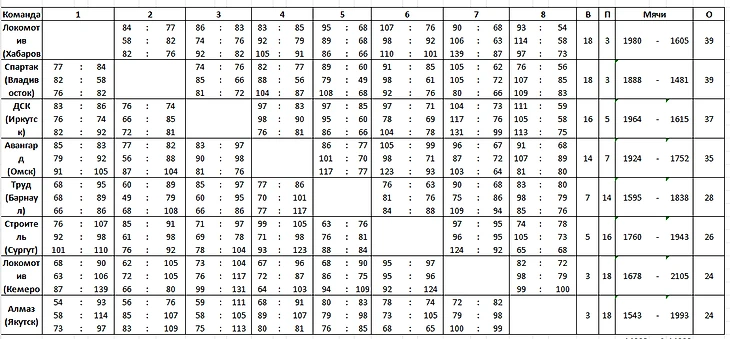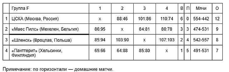 Четвертое место занял «Жальгирис» (19-15), пятое – «Динамо» Тб (18-16), шестое – «Динамо» М (16-18).