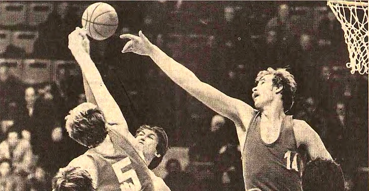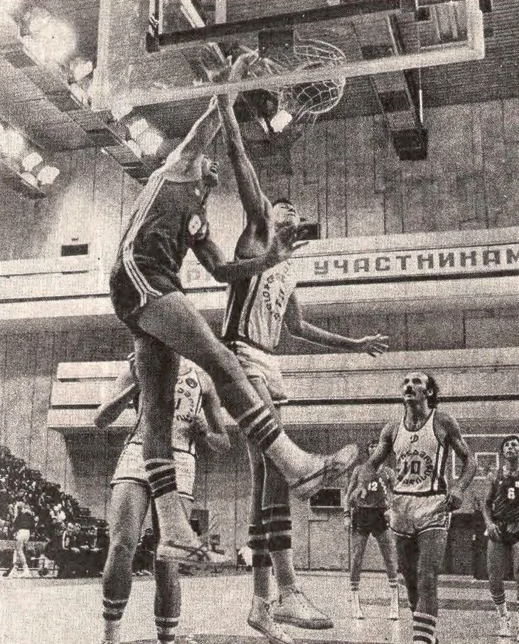 14 декабря 1980. УСЗ ЦСКА. Московские армейцы выигрывают у московских динамовцев – 107:106. Андрей Лопатов (№ 8) набрал 23 очка, Игорь Королев (№ 9) – 14