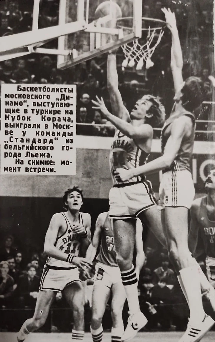 14 января 1981. Москва. Дворец спорта «Динамо». «Динамо» – «Стандард» – 100:85. Обыгрывая бельгийца Жан-Люка Селицки (№ 8), Сергей Попов (№ 14) набирает очередные два очка (из своих 22 в этом матче). Помощь Сергея Гришаева (№ 11) не требуется